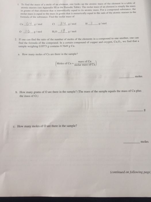 The molar mass of any element can be determined by finding the atomic mass of the element on the periodic table. It has a mass that is equal to its relative formula mass. From compound to compound to a number of atoms in a molecule vary. One mole (abbreviated mol) is equal to 6.022×1023 molecular entities (avogadro's number), and each element has a different molar mass depending on the weight of 6.022×1023 of its atoms (1 mole). Apr 30, 2018 · divide the mass of the compound in grams by the molar mass you just calculated.